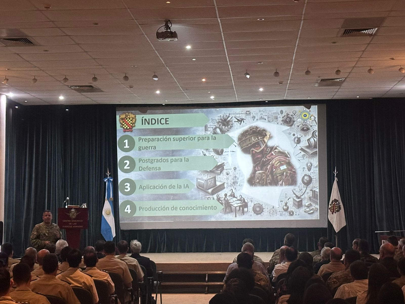 El director de la Escuela Superior de Guerra del Ejército Argentino, Coronel Juan Carlos Arias Roig, brindó una charla de orientación al personal militar y...
